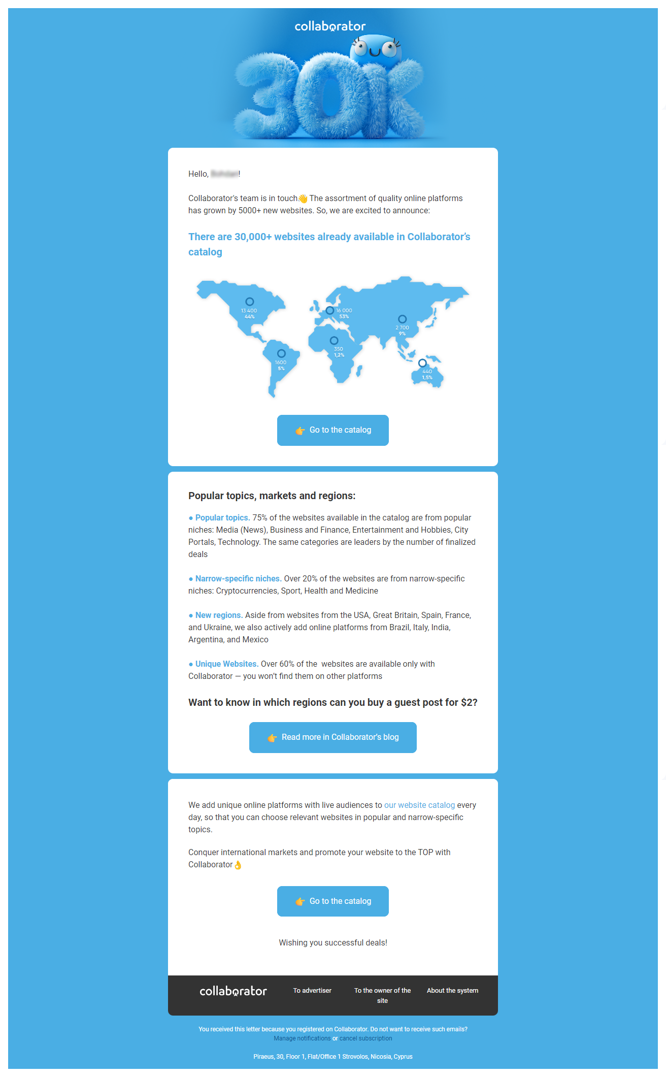 The newsletter is almost the most popular type of email campaign, that’s why, with its help, businesses can talk to the client on topics that are beneficial to them, offering to buy goods or provide relevant services. And finally, the newsletter is very convenient for both parties, the brand and the buyer, everyone wins here.