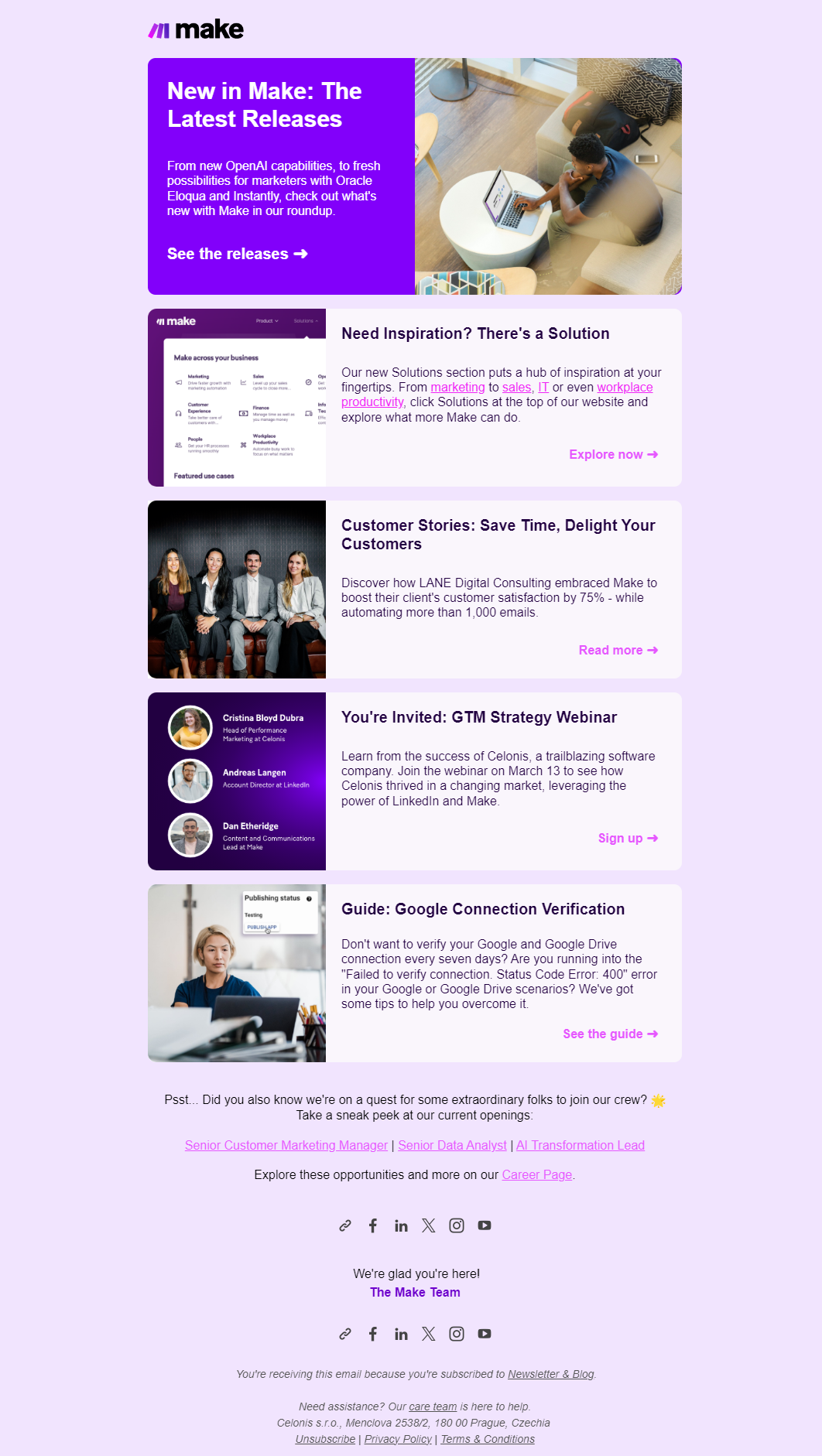 To train your eye and taste, see the best examples of successful newsletters our team has collected for you, which clearly show how different approaches to writing and illustrating emails can be. Select the tips you should follow when creating a newsletter, choose trendy templates, get inspiration, and craft your great content.