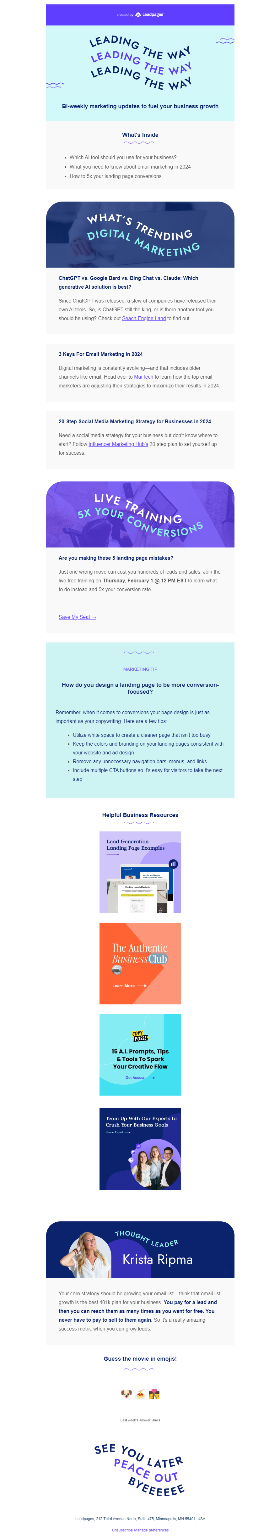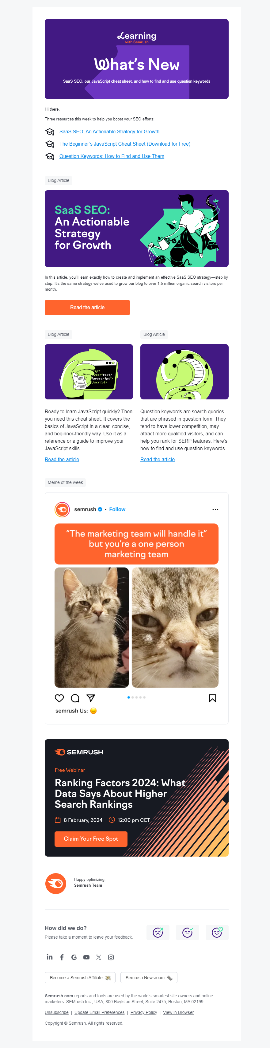 Don’t waste your readers’ time, write a concise copy to make it easy to read. Also not to be boring and entertain them, include videos, infographics, gifs, memes, and interactive elements in your newsletter, not just blog posts. How about incorporating user-generated content, customer testimonials, and success stories to add authenticity and credibility to your newsletter? Experiment with different layouts, such as single-column or multi-column designs, to optimize readability and visual appeal.