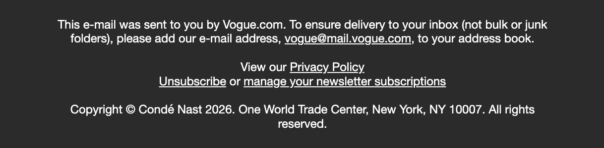 In newsletter footers, brands often include a brief reminder of why the recipient is subscribed, followed by preference management options. This reduces unsubscribes driven by confusion rather than lack of interest.