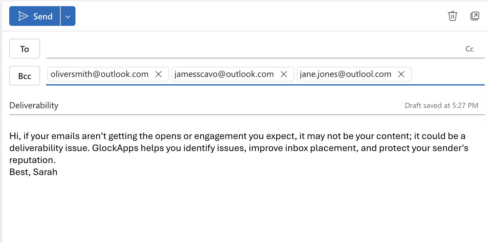 For serious campaigns? Pair Outlook with deliverability monitoring and strategy.