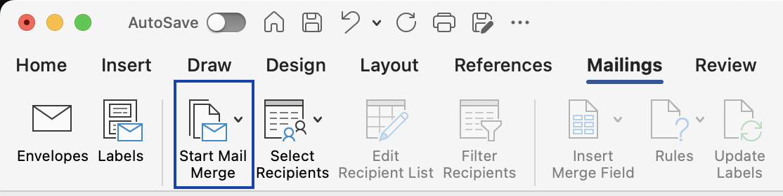 Launch the desktop version of Microsoft Word and navigate to the Mailings tab in the ribbon.
