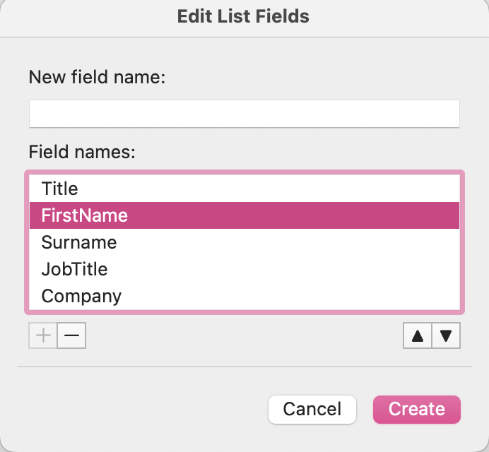A dialog window titled Edit List Fields will appear. This functions as a built-in contact database.