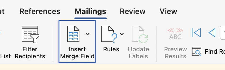 Compose your message in Word and insert merge fields. Use Insert Merge Field to add personalization.
