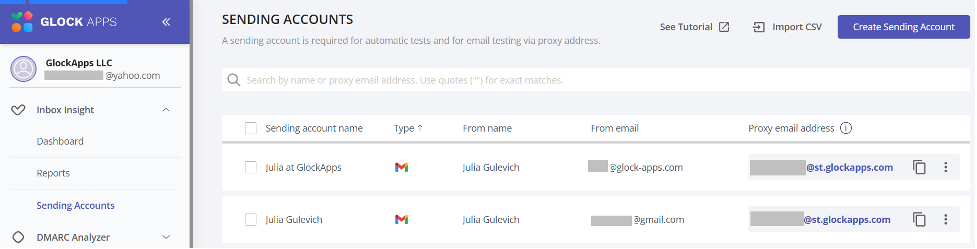 Connect GlockApps with your email account. This takes a few mouse clicks if you have a Google or Outlook email account. The integration with other email service providers can be done by entering the SMTP settings manually. - Generate a proxy email address.