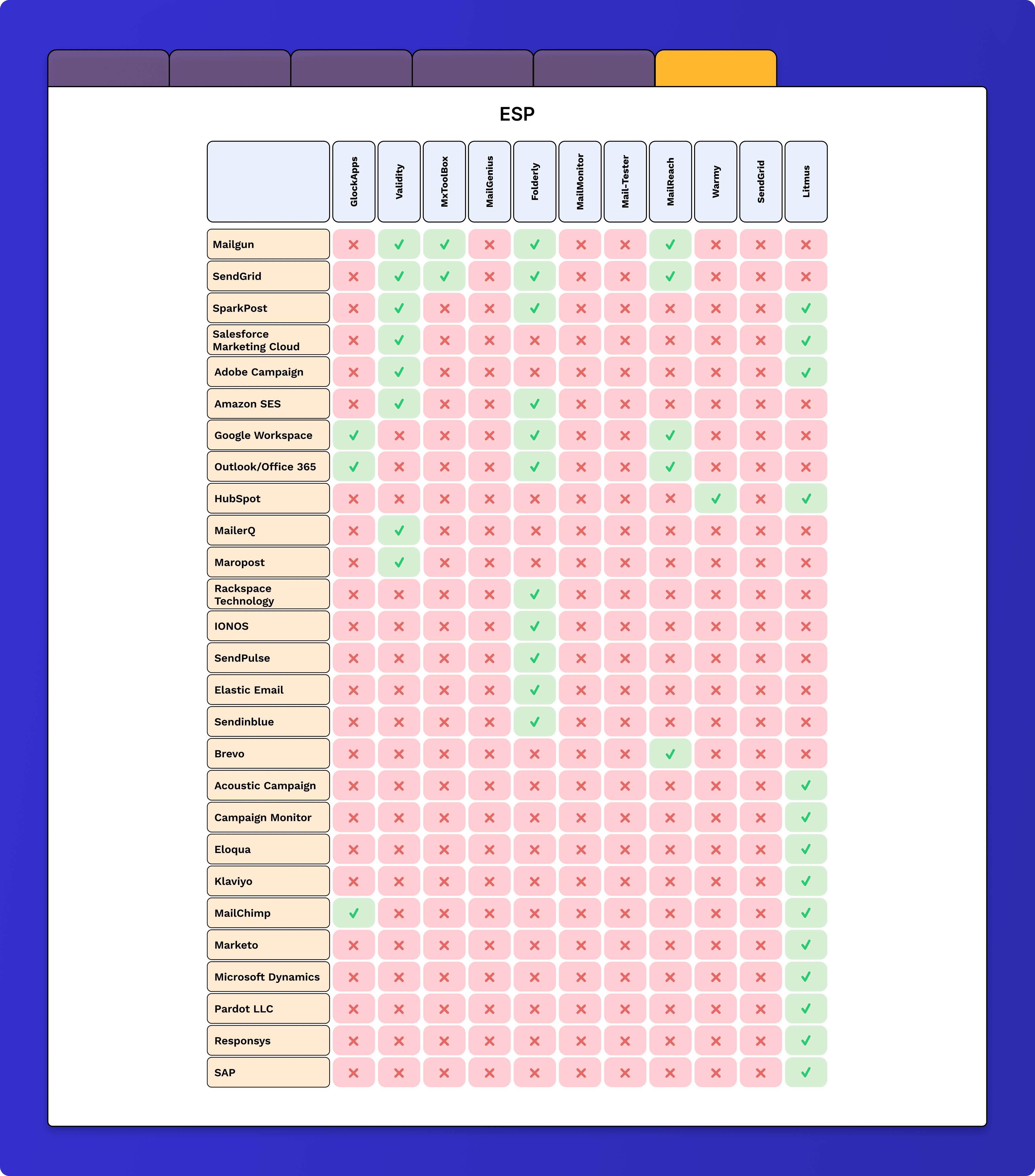 The integrations with popular ESPs make it easy to run email deliverability tests and allow to automate email testing. I have a good comparison of the ESP integrations available in the examined tools for you.